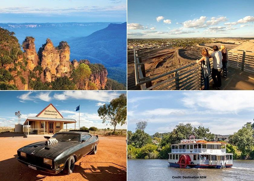 Line of Lode Miner’s Memorial; The Albert Kersten Mining & Minerals Museum ‘GeoCentre’; Royal Flying Doctor Service; Sunset Drinks Living Desert Sculptures; Menindee Lakes & Kinchega National Park; River Lady Wetlands Cruise; Iconic Silverton Township; Taste Of The Outback Art Trail - Galleries of Pro Hart, Howard Steer, Amanya Mitha, The Silver City Mint & Art Centre; Palace Hotel; White Cliffs Opal Mining Township; Fort Bourke Open Cut Mine Lookout; Great Cobar Heritage Centre; Dubbo Western Plains Cultural Centre; Abercrombie House; Three Sisters plus more!